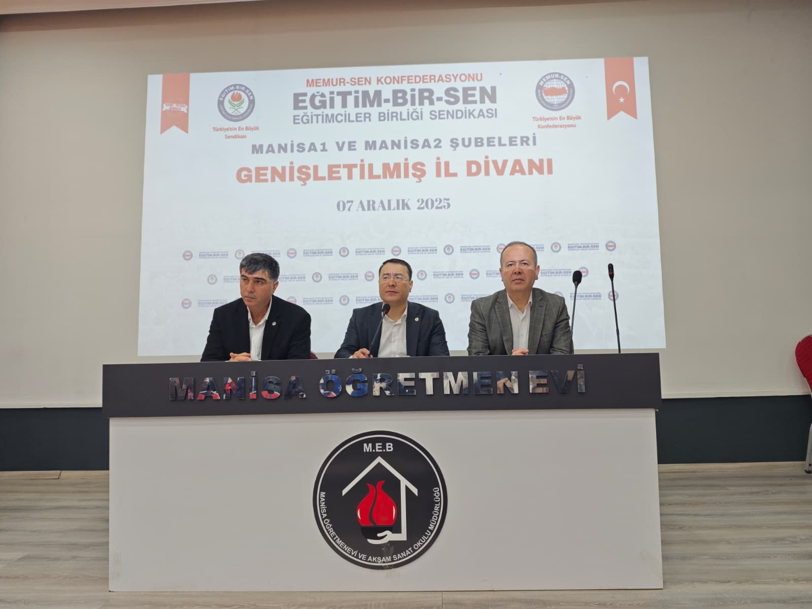 Eğitim-Bir-Sen Manisa 1 No’lu Şube, 2 No’lu Şube ile birlikte Genişletilmiş İl Divanı toplantısını gerçekleştirdi. Programa Eğitim-Bir-Sen Genel Başkan Yardımcısı Mesut Öner, önceki dönem şube başkanları Halil Kallat ve Mehmet Emin Sofuoğlu da misafir olarak katıldı.