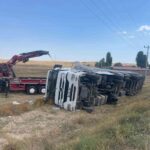 Afyonkarahisar’da kontrolden çıkan tuz yüklü tır tarım arazisine devrildi, ölen ya da yaralananın olmadığı olayda tonlarca tuz ziyan oldu.