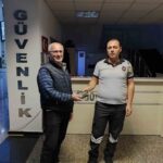 Manisa Büyükşehir Belediyesi Şehirlerarası Otobüs Terminali’nde vatandaşların huzuru ve güveni için görev yapan Zabıta Dairesi Başkanlığına bağlı özel güvenlik personelleri, cüzdanını kaybeden vatandaşın imdadına yetişti. Terminal içerisinde vatandaşların herhangi bir sorun ya da aksaklık yaşamaması için görev yapan ve devriye gezen güvenlik görevlileri, devriye esnasında unutulduğu ya da düşürüldüğü tahmin edilen cüzdan buldu. İçerisinde yaklaşık 10 bin TL ile kişisel bilgilerin bulunduğu cüzdanın sahibini tespit eden güvenlik personeli, garaj esnafından birine ait olduğu tespit edilen cüzdanı, tutanak karşılığında sahibine teslim etti. Duyarlılığı nedeniyle Büyükşehir personeline teşekkür eden vatandaş, cüzdanını teslim aldı. Vatandaşların huzuru için çalışmalarını sürdürdüklerini belirten Zabıta Dairesi Başkanı Evren Yıldız, özel güvenlik personelinin 24 saat görevinin başında olduğunu söyledi.