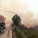 Öte yandan yangın, Rüzgar Enerji Santralleri (RES)’ninde etrafını sardı. Rüzgarın etkisiyle büyüyen yangın, İzmir-Çeşme otoyoluna kadar ilerledi. Bu nedenle, İzmir-Çeşme otoyolunun Uzunkuyu mevkii, makilik alanda çıkan yangın nedeniyle trafiğe kapandı.
