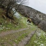 Kütahya’da kış uykusundan uyanan ve yaylada yiyecek arayan anne ayı ile 2 yavrusu, bölgedeki bir vatandaş tarafından görüntülendi.