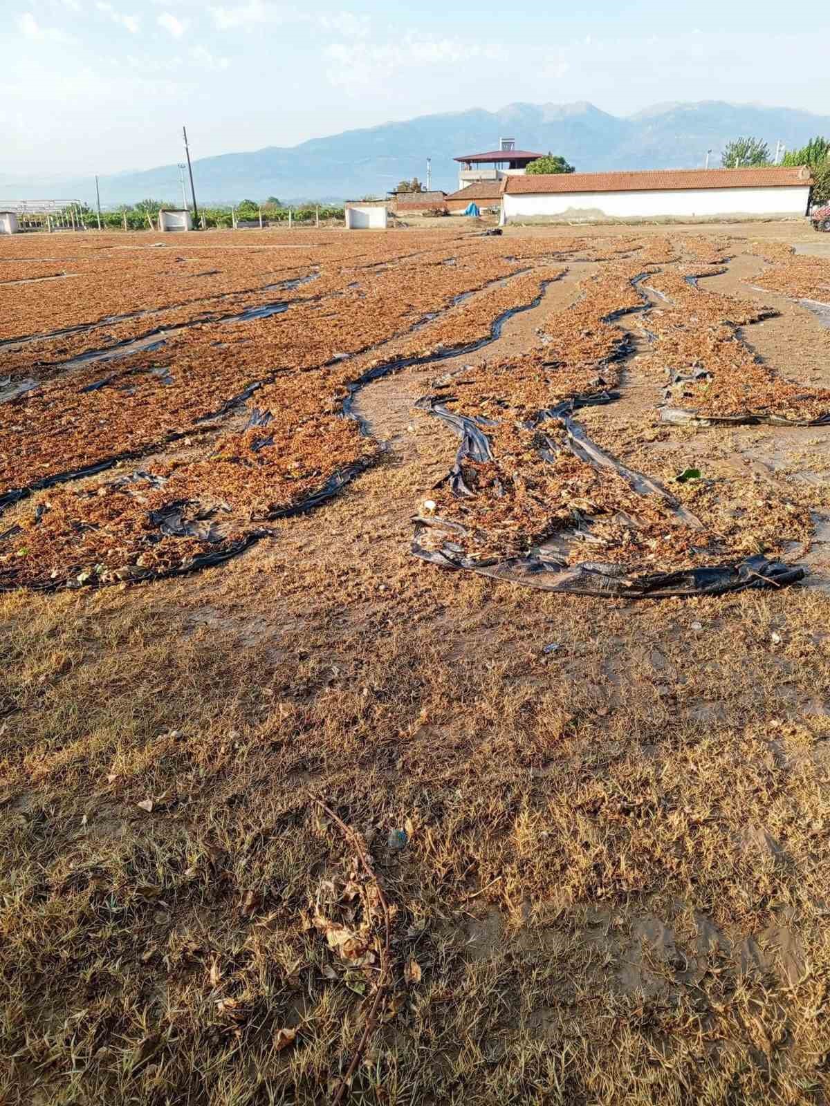 Sağanak yağış kuru üzüm sergilerine zarar verdi