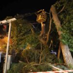 Manisa’nın Turgutlu ilçesinde akşam saatlerinde yaşanan fırtına sebebiyle şehrin en işlek caddesinde bulunan çınar ağacı devrildi. Olayda can veya mal kaybı yaşanmazken, yaklaşık bir saatlik çalışma sonunda devrilen ağaç budanarak kaldırıldı.