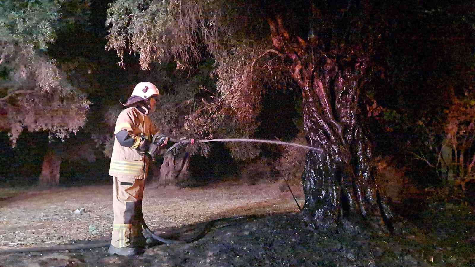 Zeytin ağaçlarının yakılmasının ardından nöbet tutan köylüler rahat bir gece geçirdi